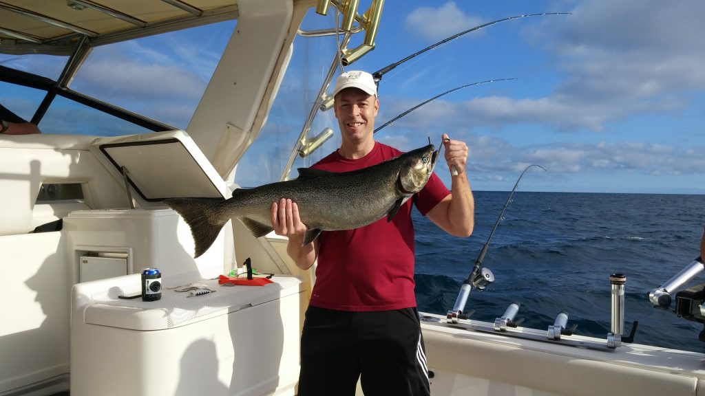It’s the middle of July and the King salmon have arrived in Ludington. We’re taking a mixed bag, some nice steelhead as well.